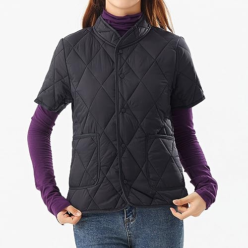 Pufferly Jackets for Women Quilted Womens Lightweight Short Sleeve Two Pockets Down Jacket (Available In Hooded 4
