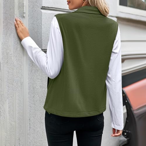 Womens Zip Up Fleece Vest - Casual Warm Winter Lapel Collar Sleeveless Fuzzy Sherpa Outerwear with Pockets 1