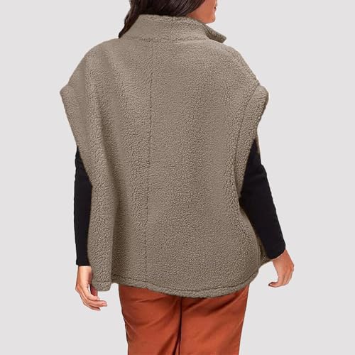 Womens Fleece Vest Casual Oversized Button Down Sherpa Vest Stand Collar Sleeveless Fuzzy Jackets with Pockets 6