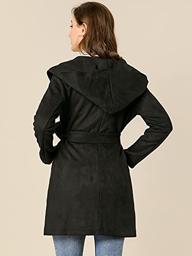 Allegra K Women's Faux Suede Hooded Winter Long Sleeve Belted Wrap Coat 1