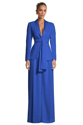 HOT ! Elegant Pant Suits for Women Dressy 2 Piece Womens Suit with Belt Casual Shawl Collar Prom Tuxedo for Wedding Guest