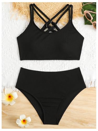 MakeMeChic Girl's Bikini Sets Criss Cross Spaghetti Strap Rib Knitted Bathing Suit 1