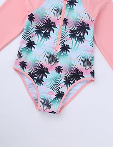 Kids Girls Rashguard Swimsuit UPF 50+ Long Sleeve Zip Front Bathing Suit Summer Swimwear with Palm Print 4