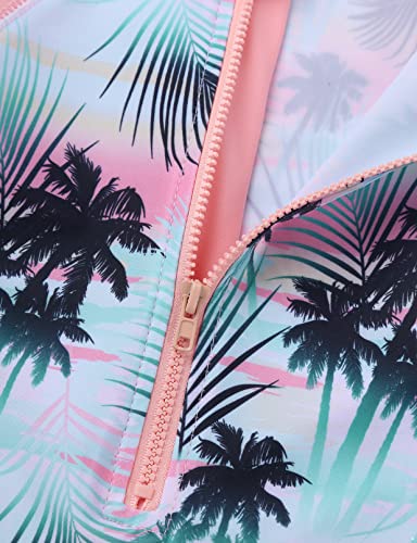 Kids Girls Rashguard Swimsuit UPF 50+ Long Sleeve Zip Front Bathing Suit Summer Swimwear with Palm Print 7