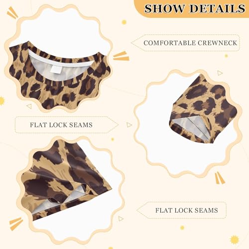 Aflyko Animal Print Kids Rash Guard Shirts Leopard Animal Print Cool Brown Boys Girls Rashguard UPF 50+ UV Sun Protection Swim Shirt Camping Hiking Swimming Fishing Travelling 9-10T 2