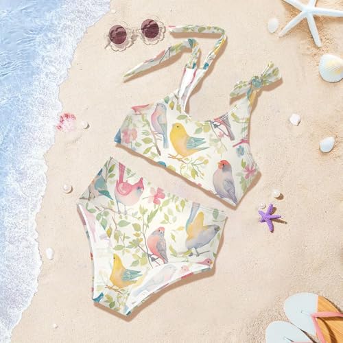 Decorative Bird Pattern Girl Two Piece Kids Bikini Set Beach Swimsuits Swimwear Adjustable Shoulder Strap 2
