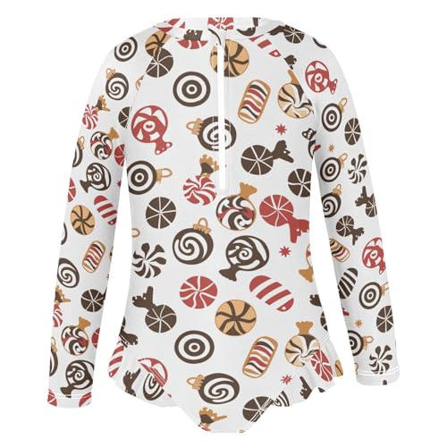 CaTaKu Girls One Piece Swimsuit Christmas Candies Brown Toddler Bathing Suit Long Sleeve UPF 50+ Rash Guard Swimwear 3-12Y 1