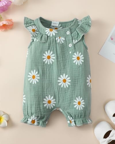 • Cotton and linen material for baby girls short sleeve romper, comfortable and breathable boho baby bodysuit for summer.