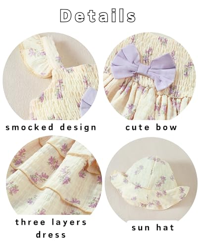 • Fashion Design: This baby dresses features a multi-layered ruffle cake skirt, a sweet bowknot on the chest, and delicate patterns such as floral, stripes, daisy, sunflower, and strawberry. The sleeveless design and ruffled sleeves add a touch of elegance and playfulness. It make your princess look so cute and fashion.