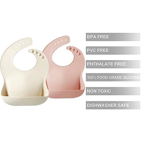 More information about PandaEar 2 Pack Silicone Baby Bibs for Girls, Waterproof Silicone Bibs with Food Catcher, Thick Adjustable Toddler Bibs Baby Food Bibs for Eating, Soft, Non Messy (Pink Tawny)