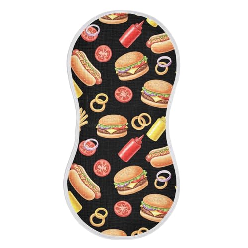 J JOYSAY Hamburger Hot Dog Black Baby Burp Cloths for Boys Girls Large 22''x11'' Cotton 4 Layer Burp Clothes Set for Babies Newborn one sizex4 5