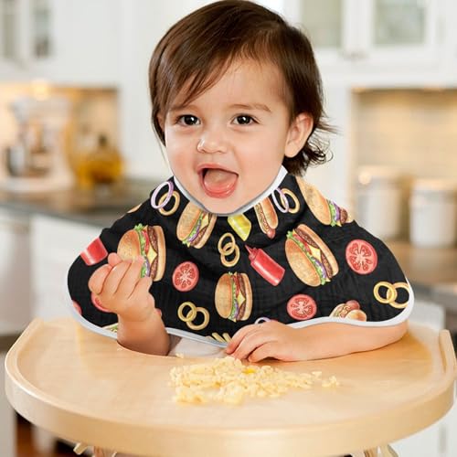 HOT ! J JOYSAY Hamburger Hot Dog Black Baby Burp Cloths for Boys Girls Large 22''x11'' Cotton 4 Layer Burp Clothes Set for Babies Newborn one sizex4