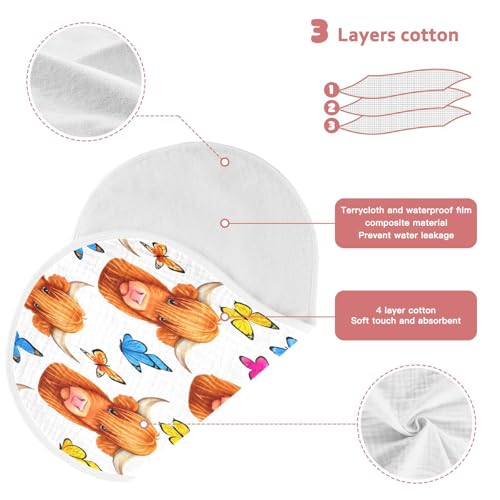 • Premium Material - The Highland Cow burp cloth for baby are made of 4 layers of cotton (muslin), Soft and comfortable to the touch, breathable and skin-friendly, for your baby's sensitive skin, highly absorbent and machine washable