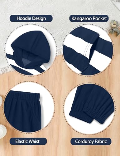 • ✨【Package Included】You will get 1* Striped Hoodie Sweatshirt+1* Corduroy Pants. Support hand wash or machine wash.