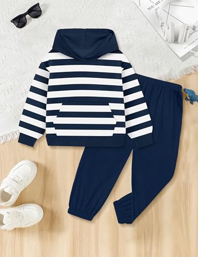 NECIOUS 3t Boy Clothes 4t Toddler Boys Clothes 2 Piece Fall Winter Toddler Sweatsuit Outfits Blue Striped Sweatshirt Tops Pants Clothing Sets 5