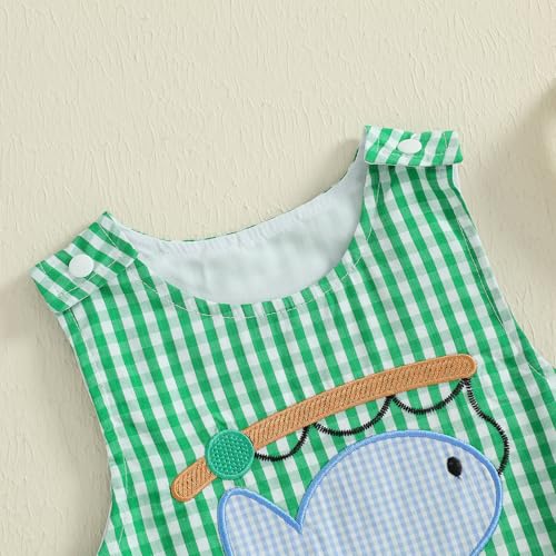 Newborn Baby Boy Fishing Outfit Fish Romper Sleeveless Overalls Plaid Shortalls Jumpsuit Infant Summer Clothes 3