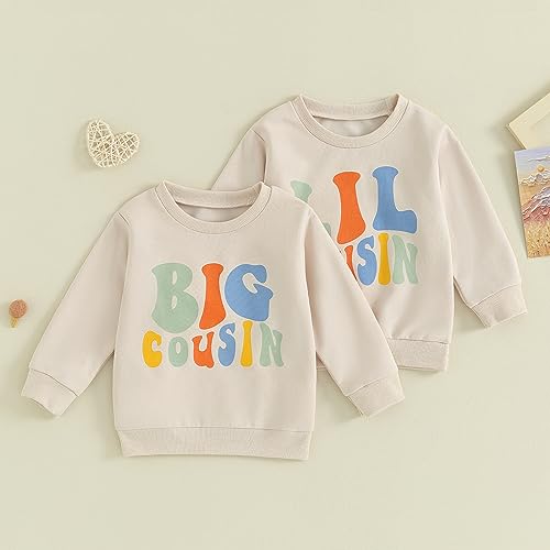 Toddler Baby Girl Boy Sibling Matching Outfits Big Cousin Shirt Embroidery Crewneck Sweatshirt Fall Winter Clothes 4
