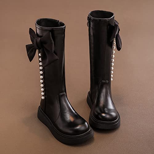 Girls Tall Leather Boots Childrens 𝐖aterproof Long Boots Big Kids Outdoor Non Slip Lightweight Boots Snow Flat Shoes 4