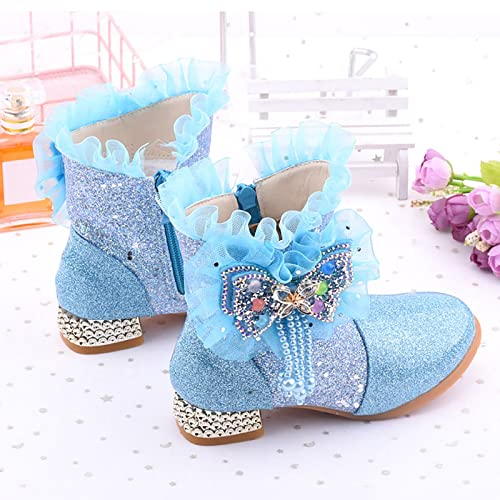 Girls Dress Cowgirl Boots Side Zipper Mid Calf Boots Princess Glitter Boots Kids Party Low Heel Mesh Top Cowboy Boots 5