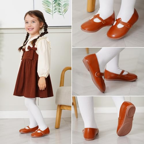 GUGUYeah Toddler Girl Mary Jane Dress Shoes,PU Leather T-Strap Princess Ballerina Flats for Wedding Party School (Toddler/Little Kid) 6