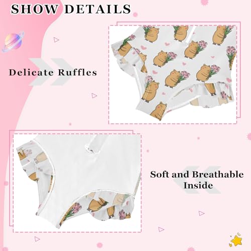 Capybara Tulip Heart Pattern Girls Long Sleeve Swimsuit Rash Guard One Piece Bathing Suits Zipper 3-12T 7
