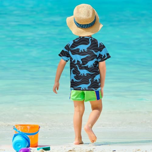 Animal Dinosaur Fluorescence Blue Black Short Sleeve Matching Bathing Suits for Kids Swimsuits for Little Girls Girls Swimsuit with Rashguard for 3-12 Years trajes de bano para nina 1