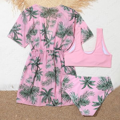 Girls Swimsuit Kids Bikini Tank Tops Printed Briefs Bottoms Short Sleeve Cardigan Dress Cover Up 3 Piece Bathing Suit 7