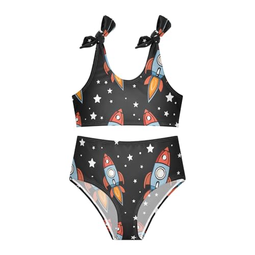 HOT ! Girls' Bikini Set, Spaceship Cartoon Character Seamless Pattern Kids Swimsuit 2 Pcs Beach Bathing Suit