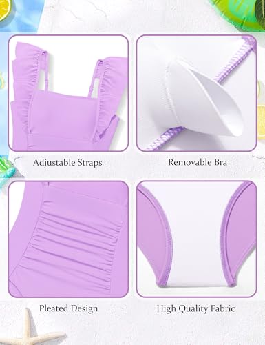 • 🏖️【Unique Design】This girls one-piece swimsuit features a bright solid color design, ruffled adjustable straps, and a removable chest pad. The pleated design helps to shape the abdomen and create a slim waistline. The secure and comfy fit ensures your daughter can move freely and enjoy the fun in the water!