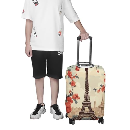Paris Vintage Floral Luggage Cover, Washable Elastic Suitcase Cover Protector Fit 18-32 Inch Luggage 7