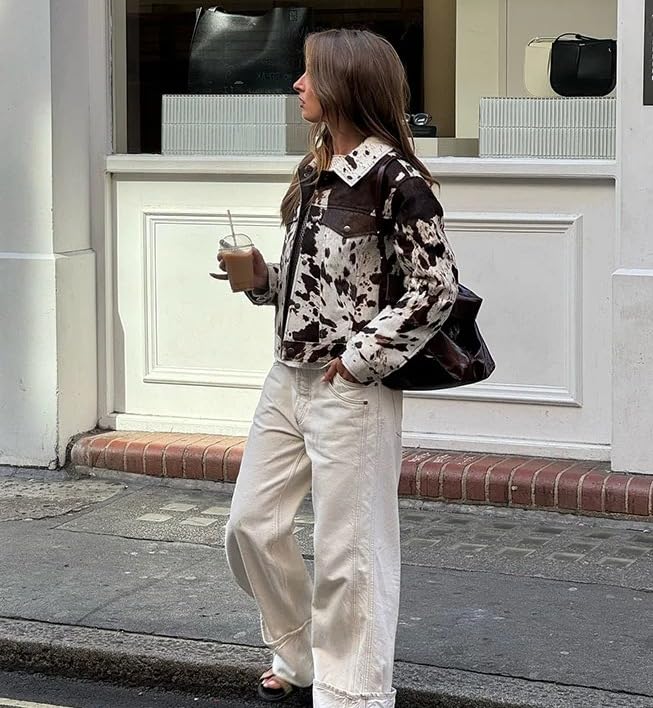 Cow Print Jean Jacket Women Cropped Faux Leather Jackets Y2k Vintage 90s Cowgirl Outfit Fall 2025 Trendy 6
