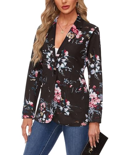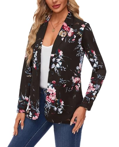 MINTLIMIT Women Jacket Blazers Casual Button Front Lapel Collar Stretchy Long Sleeve Blazer Suit Jacket Formal Work Office,M,Floral Black 1