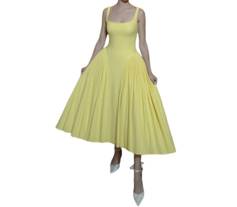 More information about HENGEN 2025 Summer New Women's Clothing Elegant Temperament High Waist Slim Fit Solid Color Square Neck Suspender Dress