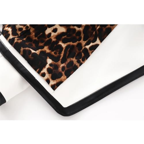More information about Generic Women Notched Black Contrast Color White Pu Leather Patchwork Jackets Leopard Print Blazers