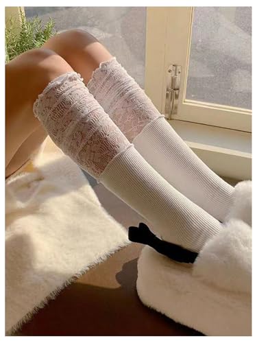 HOT ! COZYEASE Women's 1 Pair Lace Patchwork Knee High Socks Cute Y2k Boots Socks Stockings