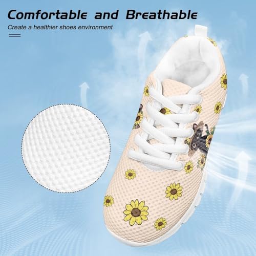 Yzaoxia Black Cat Sneakers for Girls Size 5 Sunflower Mesh Tennis Shoes Athletic Running Shoes for Kids Walking Sneaker Lace Up Trainers Non Slip Footwear Yellow 1