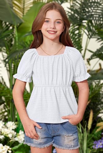 BesserBay Girls Summer Cute Puff Sleeve Off Shoulder Top Peplum Babydoll Square Neck Shirt 6-14 Years 5