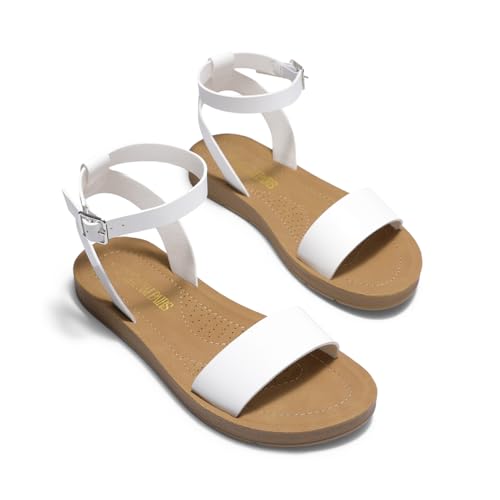 DREAM PAIRS Women’s One Band Ankle Strap Buckle Flat Sandals 6