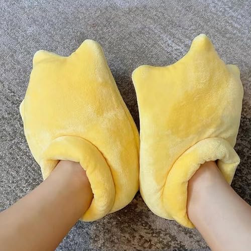 Duck Feet Slippers - Cartoon Duck Feet House Slippers, Yellow Fluffy Claw Paw Indoor Shoes for Women & Men 7