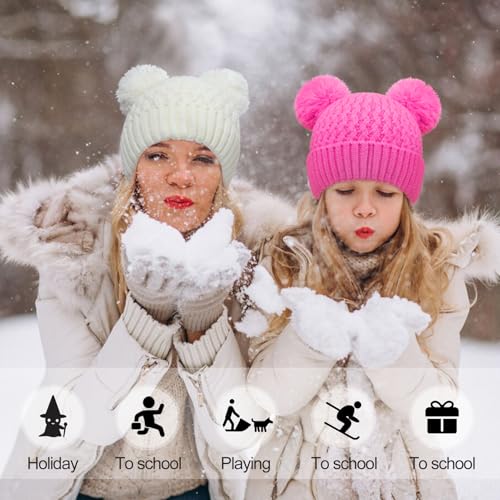 More information about Kids Winter Hat Warm Knitted Beanies with Double Pom Pom Thick Ski Cap for Boys Girls 7-12 Years