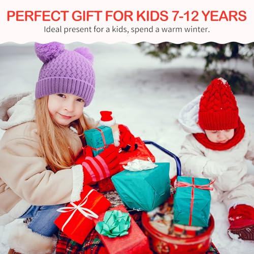 Kids Winter Hat Warm Knitted Beanies with Double Pom Pom Thick Ski Cap for Boys Girls 7-12 Years 7