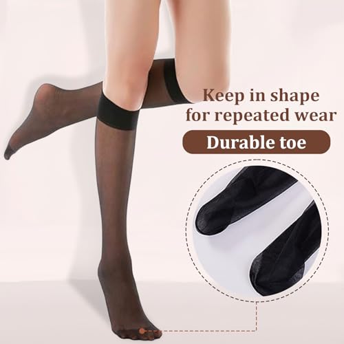 10 Pairs Sheer Knee High Stockings for Women, Black Nude Knee High Hose Nylons Pantyhose 3