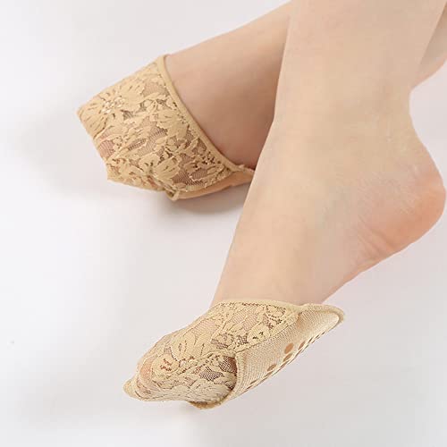 4 Pairs Half Toe Socks No Show Liner Socks Non-Skid Bottom Women Lace Toe Topper Liner Socks with Padding Pads, Black and Nude, One Size 5
