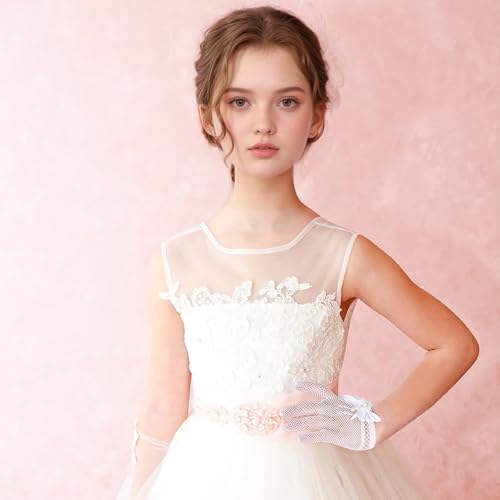• Soft Communion Gloves--The tea party gloves are made of elastic fabric material,soft and skin friendly, providing flexibility and a snug fit for little hands. The lace bows and faux pearl on the gloves add a whimsical touch