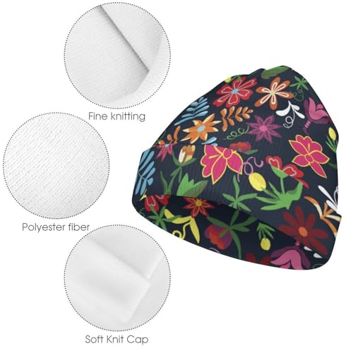 More information about Colorful Mexican Floral Pattern Kids Beanie Hat for for Girls Boys Children Cap Winter Knitted Chemo Cancer Headwear Accessories Gifts Decoration
