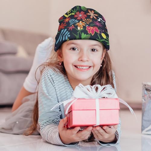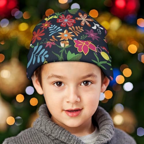 Colorful Mexican Floral Pattern Kids Beanie Hat for for Girls Boys Children Cap Winter Knitted Chemo Cancer Headwear Accessories Gifts Decoration 1