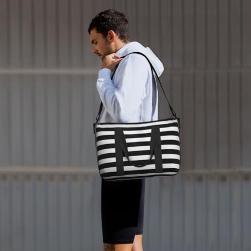 Laptop Tote Bag for Women Work - Black And White Stripes Gym Bag for Women Men, Personal Item Crossbody Travel Bags Carry On, Overnight Weekender Bags for Women Travel 4