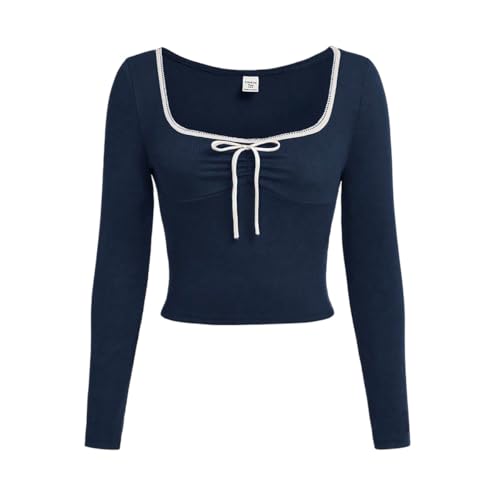 More information about SweatyRocks Girl's Long Sleeve Crop Tops Bow Square Neck Pullover Ruched Shirt Slim Fit Going Out Top