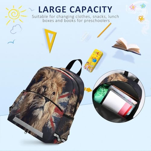 panksolu British Flag with Lion Toddler Backpack for Boys Girls Kids Backpacks Preschool Bag Travel Bag 6