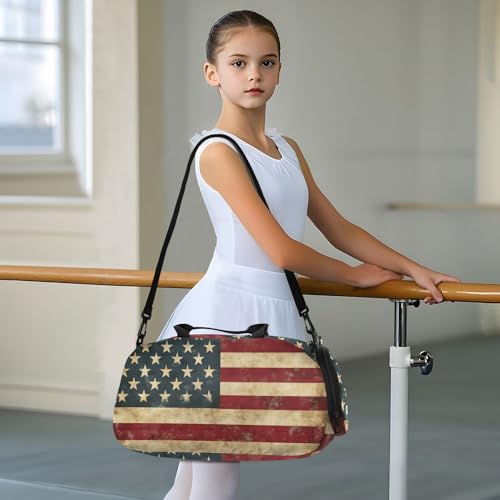 Kids Sports Duffel Bag for Boys & Girls - Retro American Flag 100% Polyester Gym Bag with Separate Shoe Compartment, Adjustable Shoulder Strap, Compact Travel & Workout Gear Bag 6